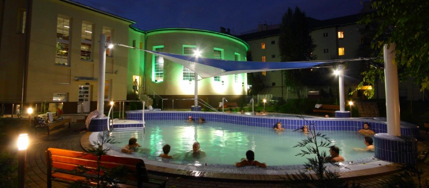 The bath features two indoor thermal pools, a wellness pool, saunas, a salt chamber, and a cozy outdoor courtyard with hot thermal sitting pools—a favorite spot even in the colder months. Its medicinal water, rich in calcium–magnesium–hydrogen carbonate, sulphate, and sodium, is particularly beneficial for joint, bone, and circulatory disorders, making Dandár a trusted destination for both relaxation and rehabilitation.