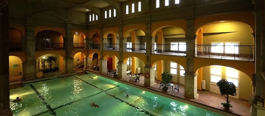 Built during the Turkish occupation in the 1550s and reconstructed by Sokoli Mustafa Pasha in 1566, the historic section remains the bath’s heart. The domed hall, supported by eight columns, encloses an octagonal pool that radiates the atmosphere of a true Ottoman hammam. Over time, Rudas expanded beyond its Turkish core: a swimming hall was added in 1896, and in 2014, the complex was transformed with a modern wellness area, including four thermal pools (11 °C–42 °C) and a rooftop jacuzzi offering panoramic views of the Danube and Buda Hills.